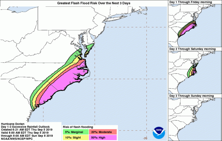 The flooding rains will be an issue, but thankfully Dorian will get in and get out: