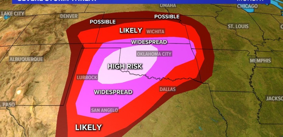We typically break these risks down for you in our forecasts so you don’t have to comb through charts and maps. We also like to use different wording to explain severe weather risks–but that’s just our preference as we assume it’s easier for people to understand. Example: We have a slight risk for severe storms today becomes “severe storms are likely today”.