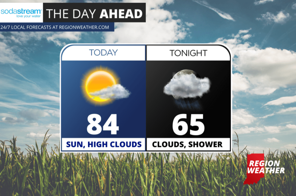 Good Monday morning everyone! We have a nice start to our day, but after a cool, comfortable weekend, that wind is shifting and we’re beginning to bring in more humidity from the south. Sun will give way to high clouds from time to time today with highs in the low to mid 80s.