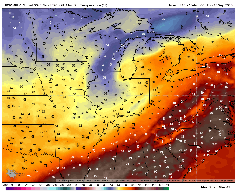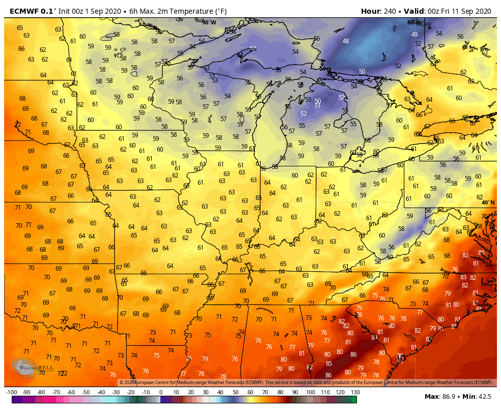The resulting high temps next week will likely not make it out of the 60s a few days. Look at how cool it gets just to our north! Low 50s and 40s for highs? Yikes! Here are some of the potential numbers.