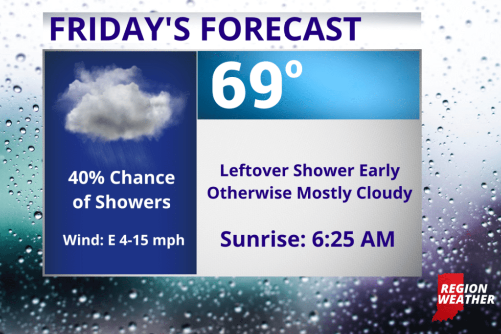 Lingering clouds and patchy drizzle in the morning, otherwise we’ll remain mostly cloudy with cool highs in the upper 60s to low 70s south. We’ll finally break this pattern on Saturday as a cold front sweeps through with showers and storms. By Sunday into the beginning of next week, get ready for some sunshine and a beautiful stretch of weather!