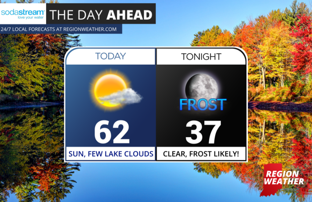 Lows will drop into the mid and upper 30s away from the lake (40s near the lake) leading to a frosty Saturday morning. Remember to bring those plants in that you’d like to keep, or cover them up this evening!