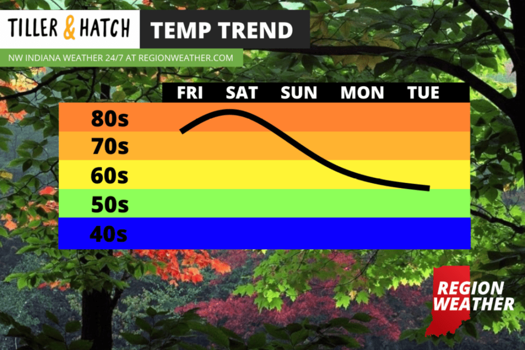 Changes are certainly in the air! Literally. We’re not looking at a sharp drop in temps, but more of a gradual decline back to the 60s and even 50s for highs by the end of next week. Enjoy these days while we have them!