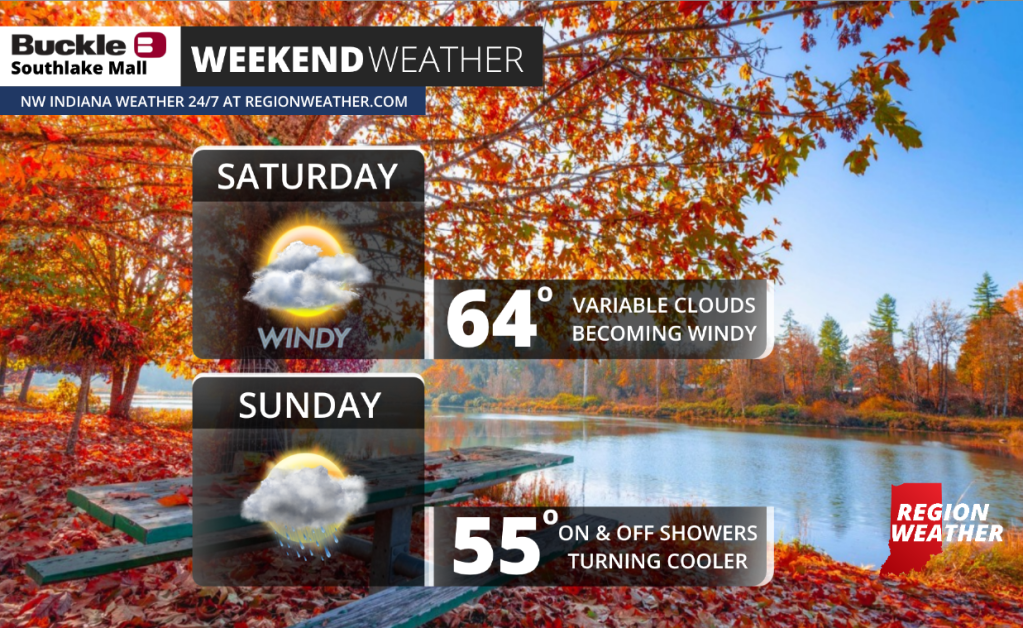 A strong area of low pressure will breeze through the Region this weekend (much like last weekend) bringing strong winds Saturday and a gradual temp drop on Sunday. We’ll see rain hold off until Saturday night into Sunday as this system works through northern Indiana.