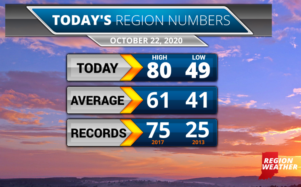 My goodness, what a difference this afternoon! We started the day in the upper 40s, but that warm front changed things around today as high temps in and around 80 helped us set a new record high in Valparaiso.