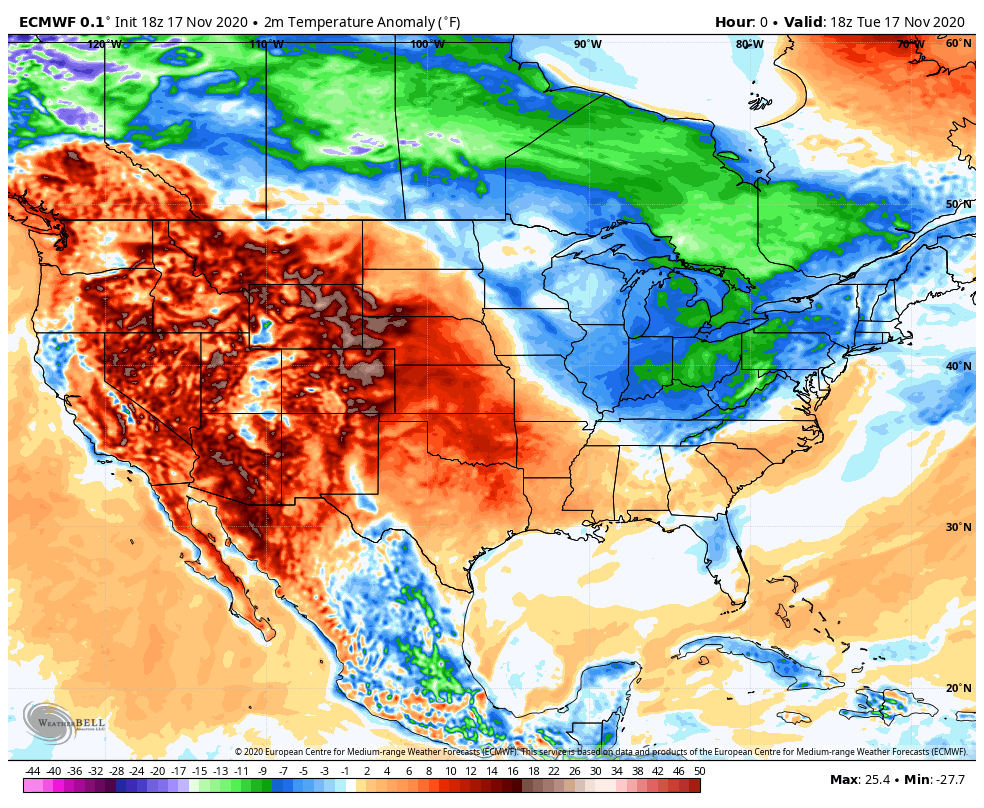 Here’s a look at temps vs average over the next few days–a good visual on the warmer temps moving in.
