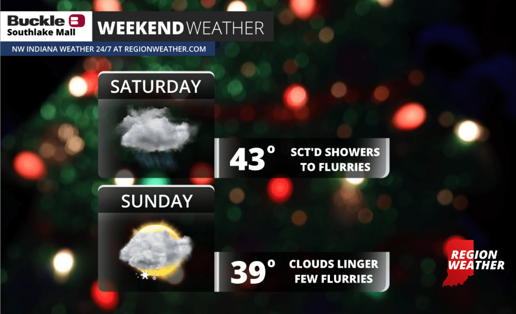 A busy weather pattern begins this weekend with a rather weak, but quick-moving system that will move through the Region. Not a lot of moisture to work with Saturday as it moves in, so we’ll likely see areas of drizzle or light rain transition to a few flurries as it turns a bit colder Saturday night into Sunday.