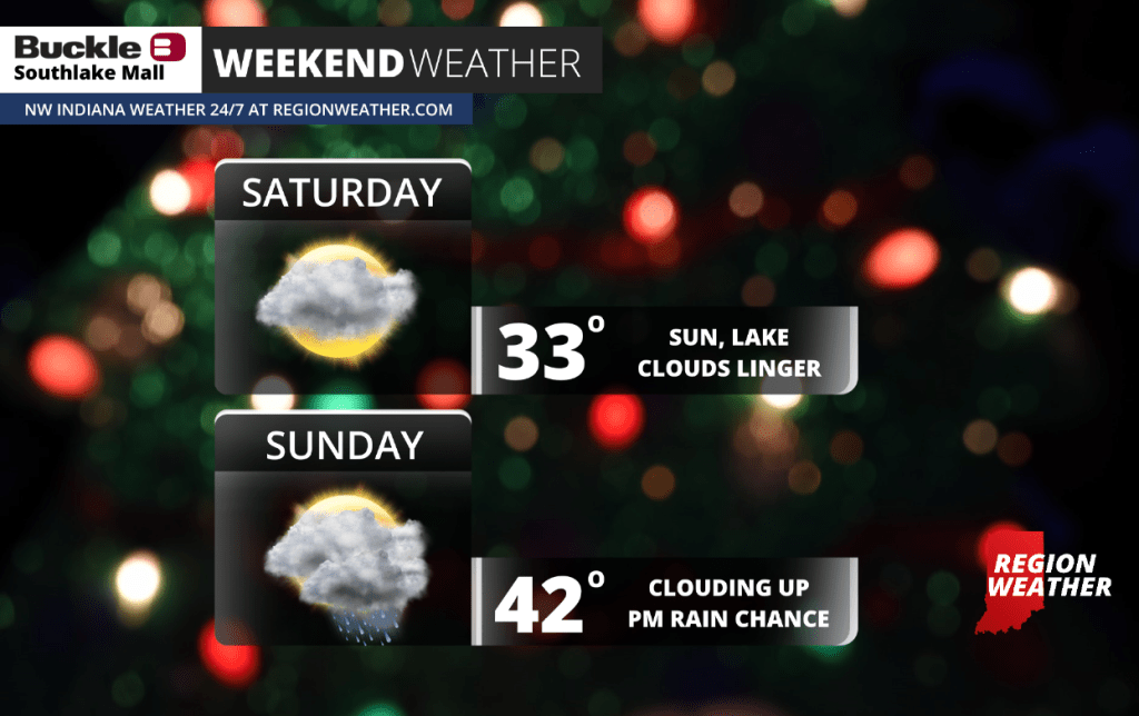 We have lingering lake effect clouds today, but expect sunshine across the majority of the Region with highs in the low 30s.