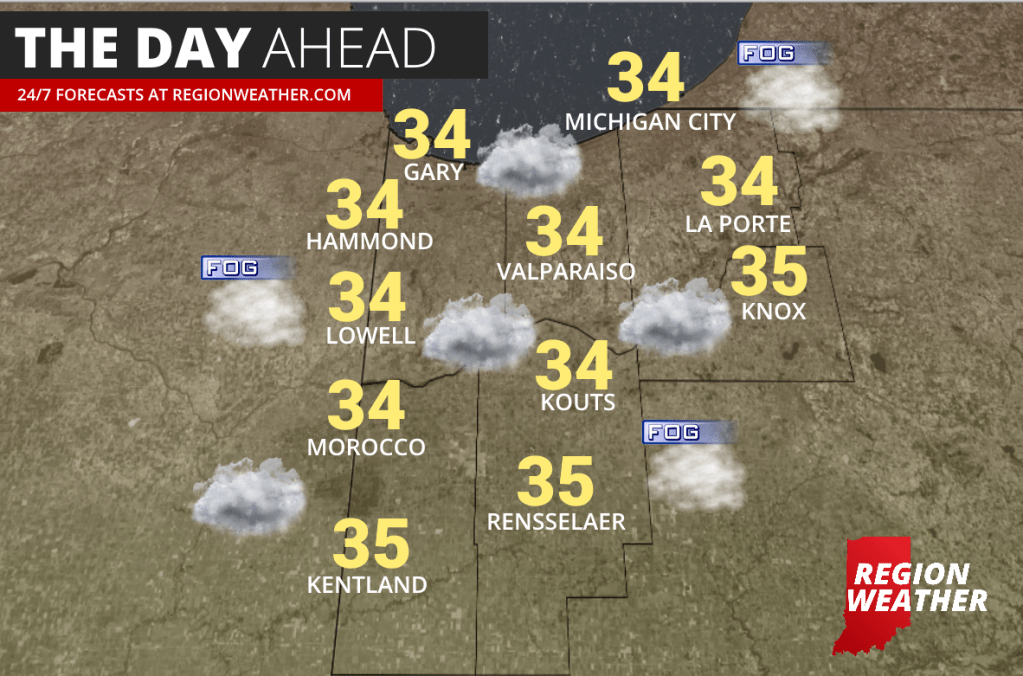 The system responsible for our snow last night is now moving well east of the Region and we’ll be stuck with lingering low level moisture for the day. That moisture will continue to support some fog and periodic light drizzle in spots. In terms of temps, we’ll remain steady in the low to mid 30s for our Sunday! We have a few systems to watch this week, but overall it will be a much quieter weather pattern across the US and locally here in NWI.