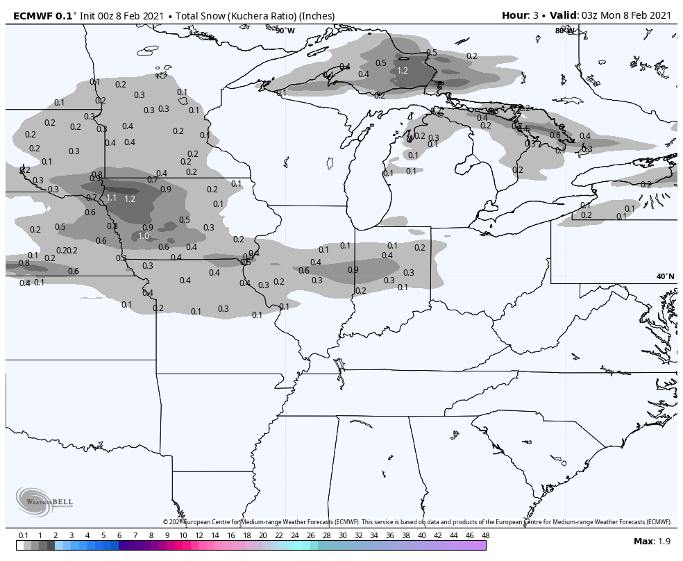 The first round will continue to spread light snow through NWI Monday morning with a more significant batch of light to moderate snow expected later Monday into Monday night. A general 1-3 inches will fall from this Monday afternoon-Monday night wave.
