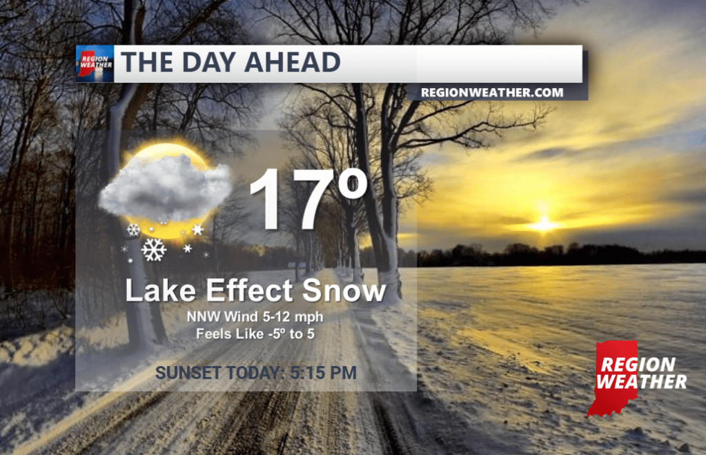 Leftover lake effect snow showers and flurries will continue across Lake, Porter, and LaPorte counties today otherwise we’ll just be dealing with the cold. We’re in the single digits outside of the snowbelt this morning and will only recover into the mid to upper 10s this afternoon.