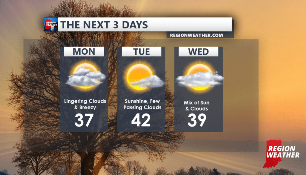 High pressure will settle in tonight into Tuesday bringing some sunshine and warmer temps that will head towards 40! There will be a series of clippers to our northeast helping to reinforce our colder air and keep us from higher temps–but compared to the last few weeks–this is bonus territory!