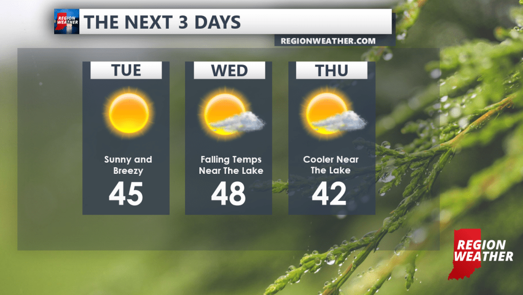Wednesday, we’ll warm nicely before the wind shifts off the lake causing our temps to crash, especially lakeside. Inland locations could easily see highs in the 50s Wednesday.