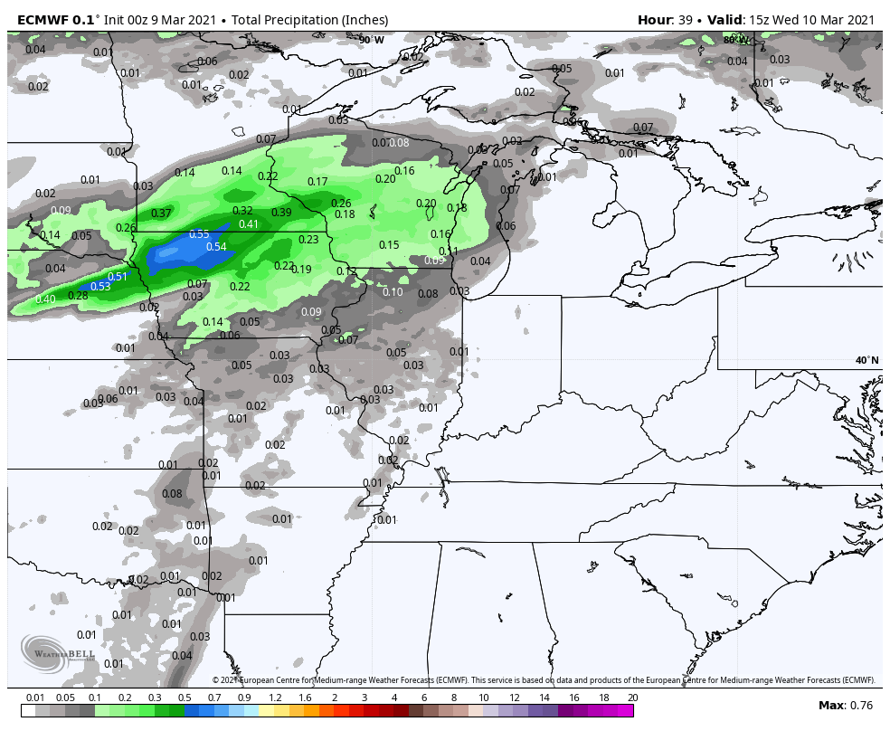 We’ll see gusty winds with this system as well with gusts over 30mph at times today and over 40 mph Wednesday into Thursday.