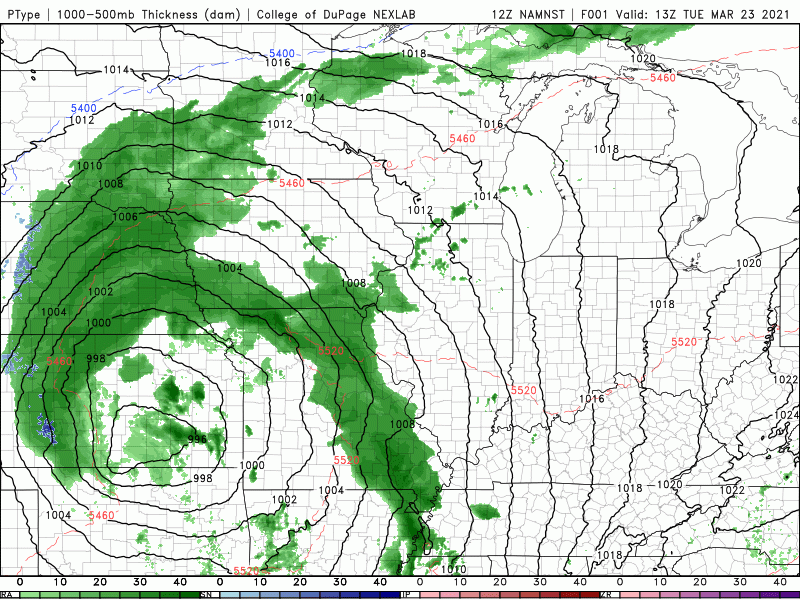 Here’s what the system will look like from the big picture view with strong storms developing along the actual front in Missouri today: