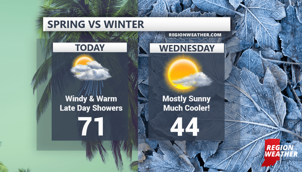 Another strong spring cold front will move through the Region tonight bringing a sharp change in temps between today’s 70s and tonight’s 30s.