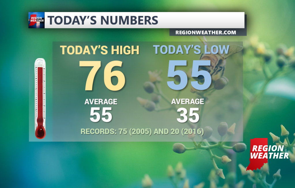 We reached 76 degrees today breaking the old record of 75 set back in 2005. We’ll push 80 tomorrow as we settle under a ridge of warmth before showers and storms return Wednesday into Thursday as an area of low pressure moves in from the west. Enjoy!