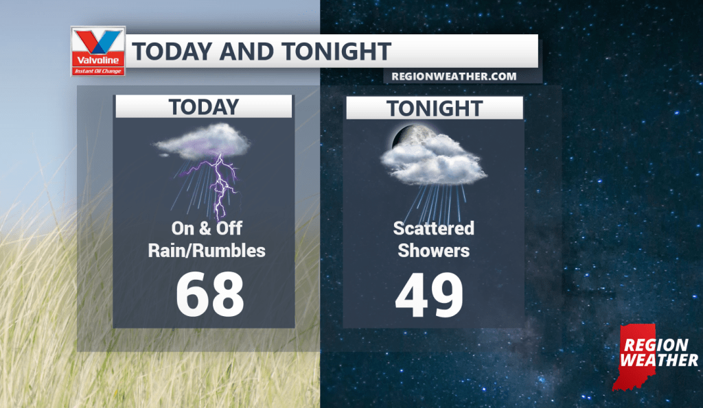 A slow-moving area of low pressure will finally move through the Region today bringing on and off showers and a few storms. We’ll have to keep an eye on a few of the storms this afternoon as they could produce gusty winds! Otherwise we’ll see dry periods in between the showers with skies remaining mostly cloudy. Highs will try to reach 70 with breezy conditions continuing over the next few days.