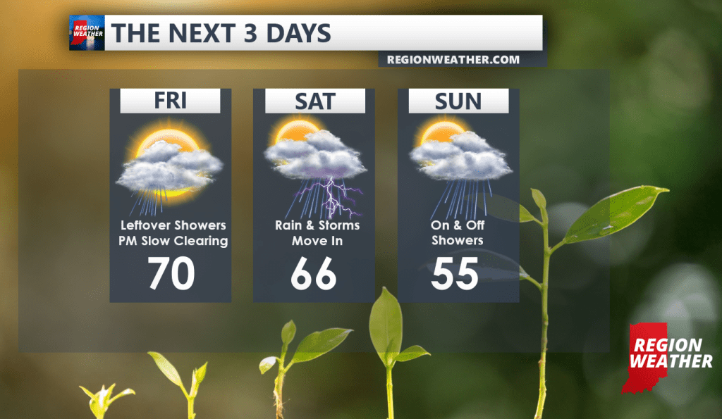 Happy Friday! We’ll see gradually improving conditions today as low pressure #1 slowly moves northeast away from the Region with highs approaching 70.