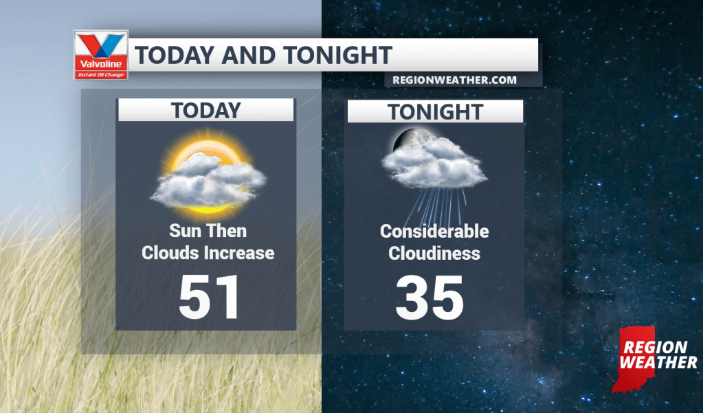 An area of low pressure will drop south out of northern Minnesota and cross over the Great Lakes today and tomorrow dragging colder air south out of Canada. Lake effect showers and (snow showers yuck) will develop in Michigan and the eastern lakes, but we should miss out on the fun here in northwest Indiana.