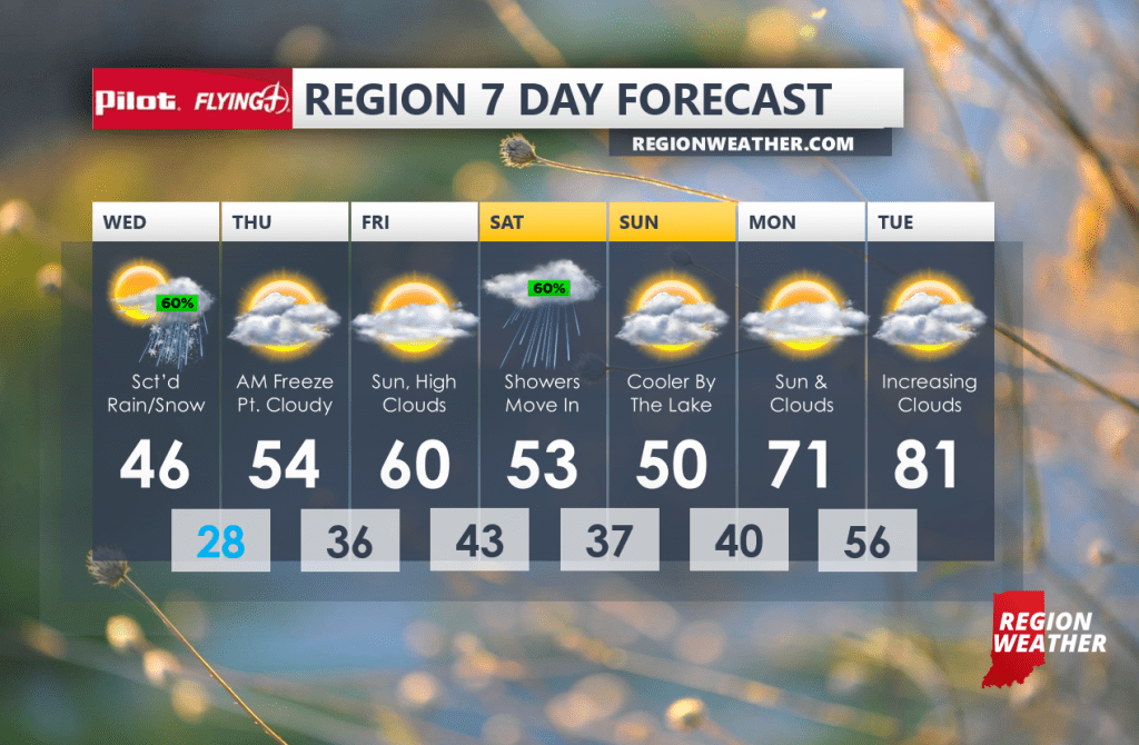 In fact, we’ll go WAY up next week as summer-like temps make a run towards the Region. Until then keep in mind we’ll likely have a hard freeze tonight and Wednesday night with temps in the 20s away from the lake. Our next storm system will arrive Saturday with a wave of showers and cooler temps. Then we bring on the warmth!