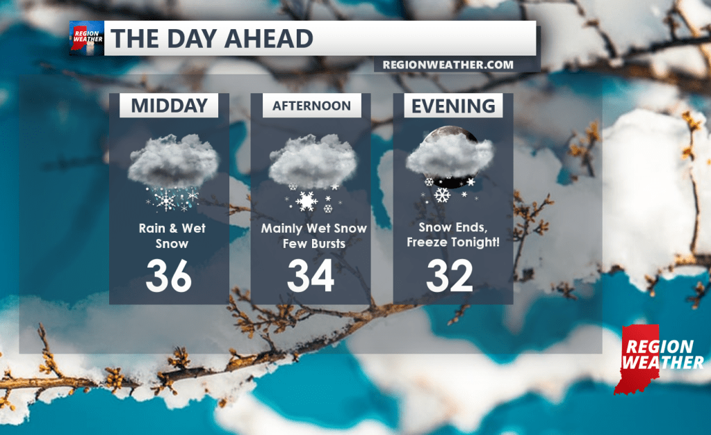 A mix of light rain and wet snowflakes will continue to develop this morning as our area of low pressure gets going to our west.