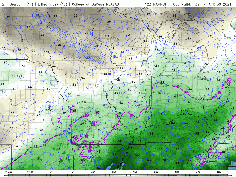 Take a look at how the dewpoints (or the measure of how humid it feels) surge into the Great Lakes the next 2 days on that strong west-southwest flow: