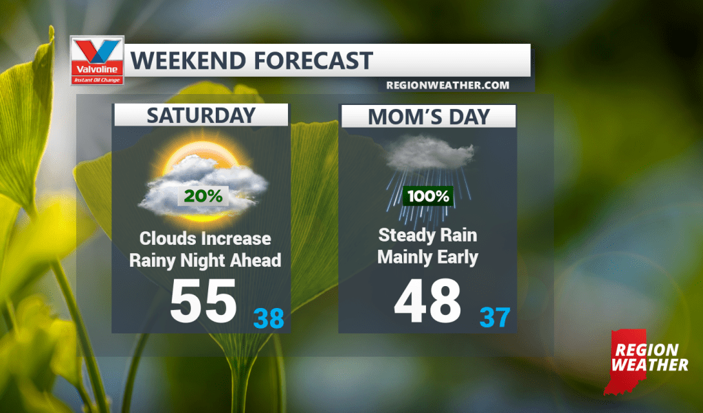 An area of low pressure will work from west to east through the Missouri Valley later Saturday into Sunday bringing widespread rain to much of the Region. We’ll see clouds increase on Saturday with a chance of some late day rain. Rain will move in Saturday night and continue at a steady clip through Sunday before diminishing during the afternoon. Sorry mom!