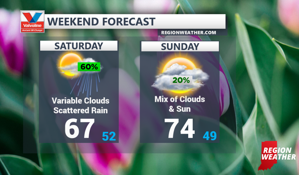 In terms of rain locally, our best chance will be Saturday and then again on Monday with most of the rain expected to avoid the Region on Sunday. Here’s one way it might pan out:
