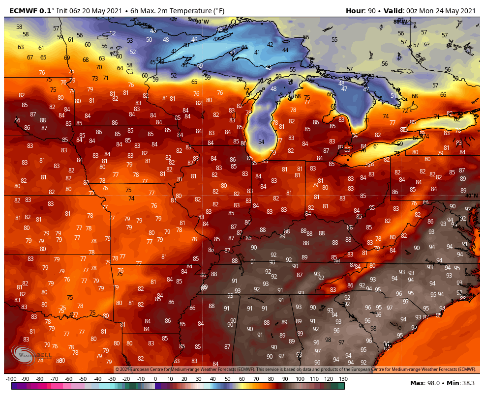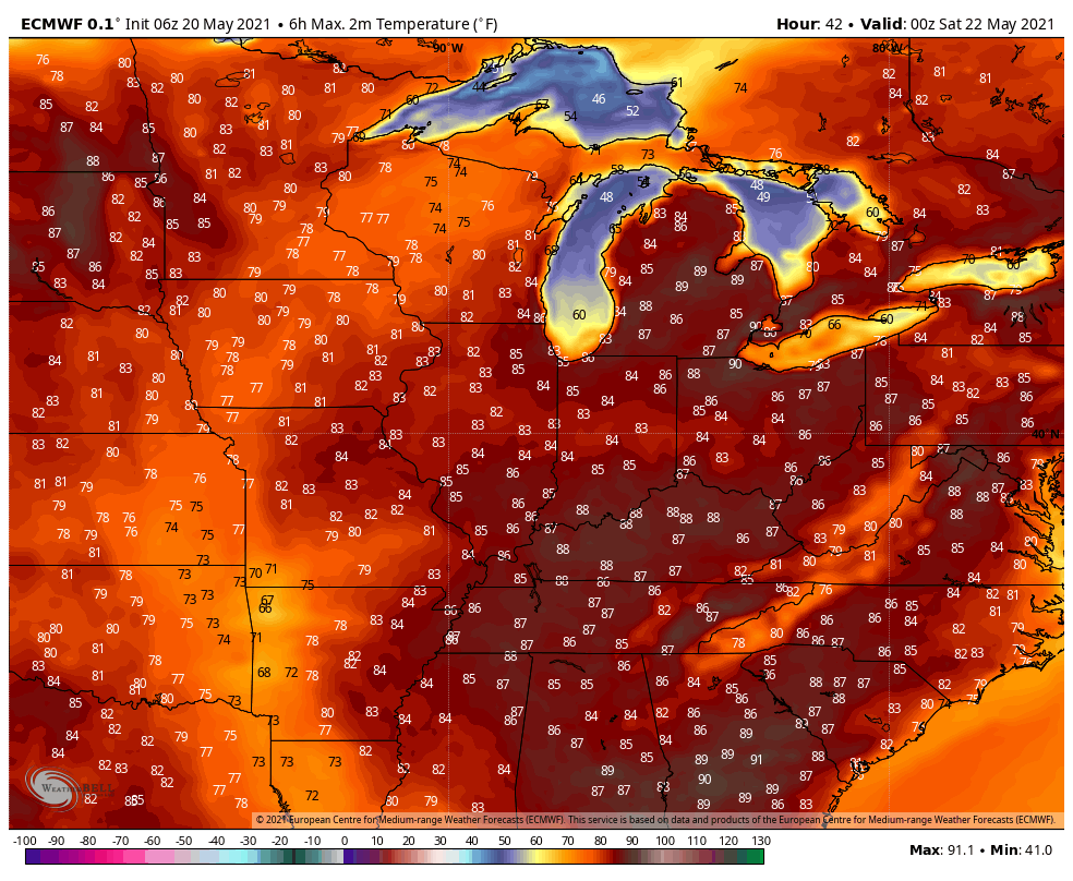For the weekend, expected upper 80s before the ridge breaks down and retreats to the south for a bit.