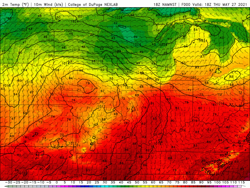 Take a look at the cool temps where the shield of rain is located! This will swing through tonight and Friday keeping our temps in the 50s.