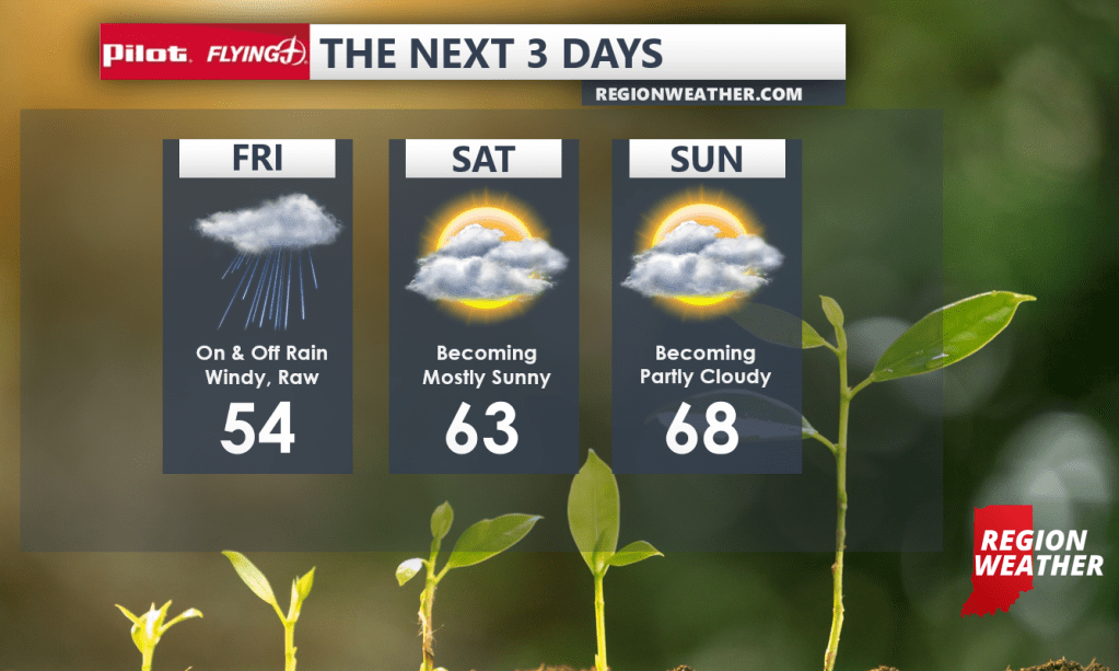 Rain will continue to move in overnight and will continue on and off through our NW Indiana Friday as an area of low pressure moves through the Region. Temps on the north side of this storm system are stuck in the 30s and 40s in Wisconsin with some snowflakes mixing in with the rain there! Not here. But we’ll be cool with a chilly wind off the lake Friday.
