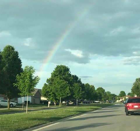 We have a few showers popping today out in advance of that low to our south–just enough to produce a few rainbow sightings around the Region. Thanks to Mark K for sending us this one.