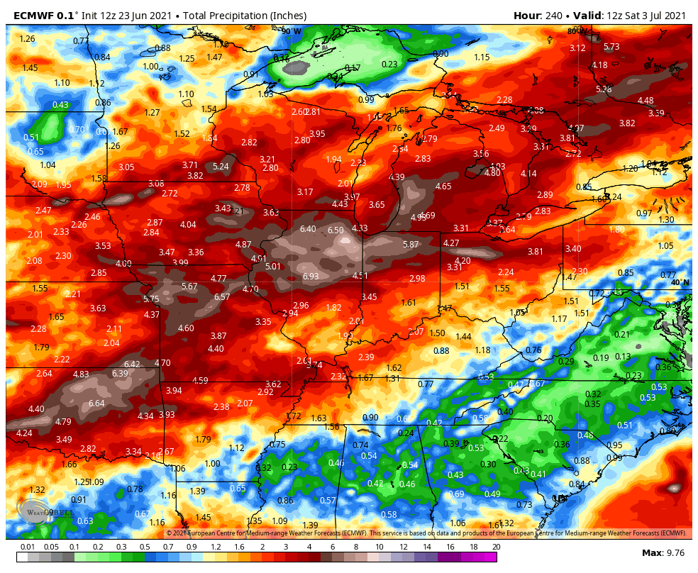 We’re still expecting a frontal boundary to move in and stall this weekend into next week bringing rounds of storms to the Great Lakes. Most guidance focuses the heaviest rain right through the Region as several waves of energy will likely trigger large areas of heavy rain and storms–all depends on where they decide to go.