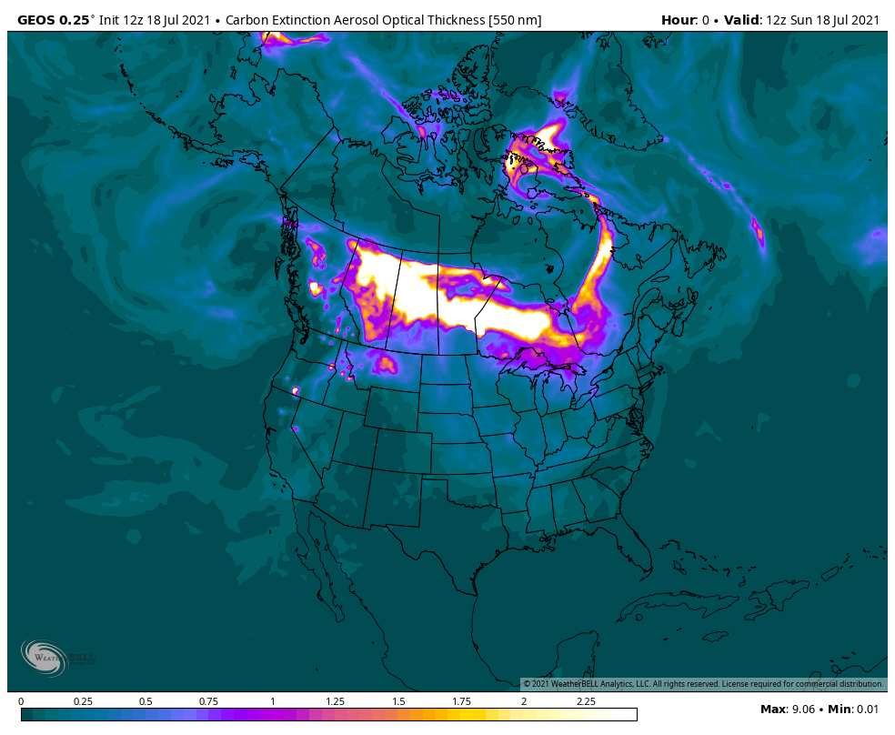 Of interesting note, yes, some of this is arriving from fires way out in Oregon and California, but a good majority of it can be blamed on expansive fires burning in western Ontario just north of Minnesota.