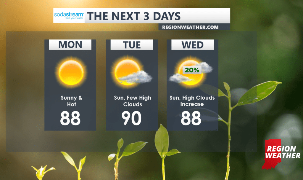 Storm chances will be on-going to our north and we’ll have to keep a close eye on the potential for any of these larger clusters of storms to sink south. For now, we’ll keep the forecast dry through Wednesday with decent storm chances returning Thursday with a frontal boundary. Stay hydrated folks!