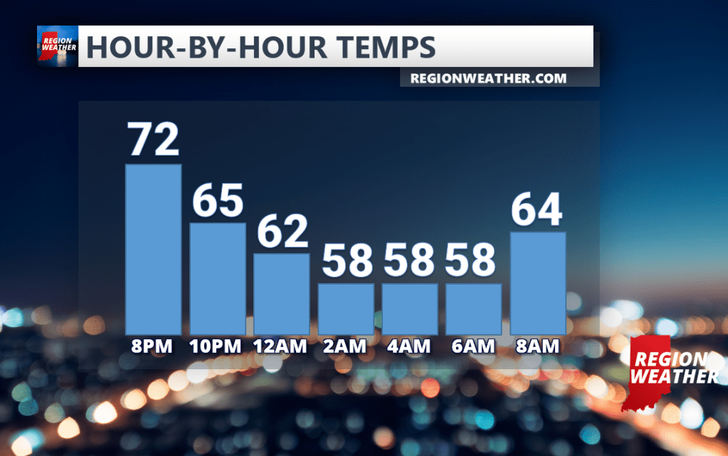 We’ll have another fall-like night around the Region as high pressure continues to settle in. Temps will fall quickly in this dry air eventually making their way into the upper 50s overnight.