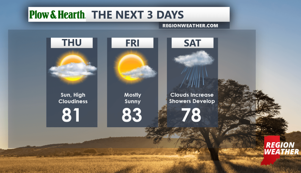 High pressure will slowly lose its grip on the Region over the next 48 hours. This will allow a slow-mover of a system to our west to finally get some legs and bring much needed rain back to northwest Indiana this weekend.