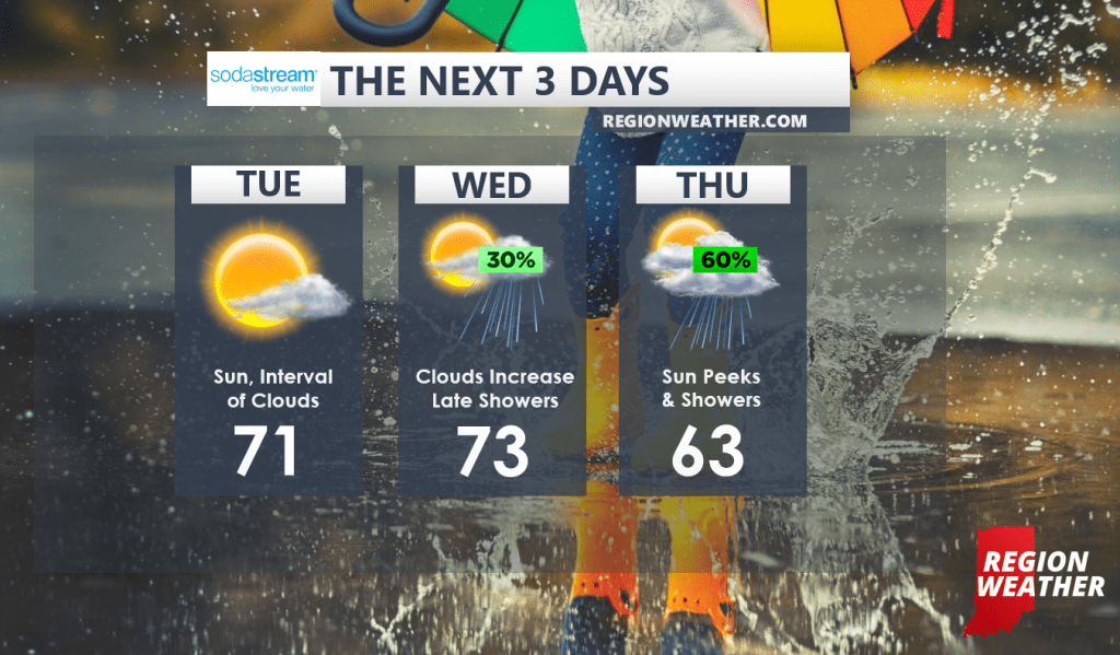 By late Wednesday we’ll run the risk of passing showers and showers will become likely Wednesday night as a cold front moves through the Region. It doesn’t look like we’ll see a lot of rain from this system, mainly just some showery weather. Leftover showers mixed with sun peeks on Thursday will accompany cooler temps and a gusty breeze. Highs Thursday behind the front will only reach into the low 60s. Even cooler air settles in from the north for the weekend with highs in the 50s at this point.