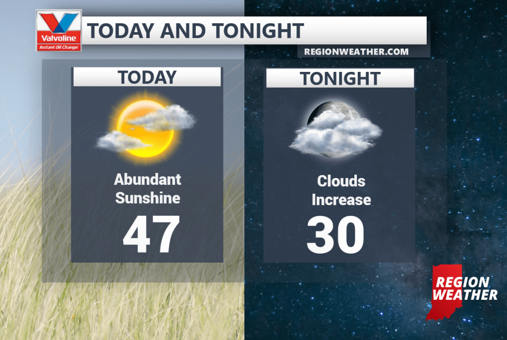 High pressure is in control and temps will warm as it heads east with highs well into the 40s expected today. Clouds will increase tonight as another system zips through the northern lakes tomorrow. This could bring us a few showers, but I have a hunch that most spots will stay dry as the bulk of the rain and snow will stay to our north!