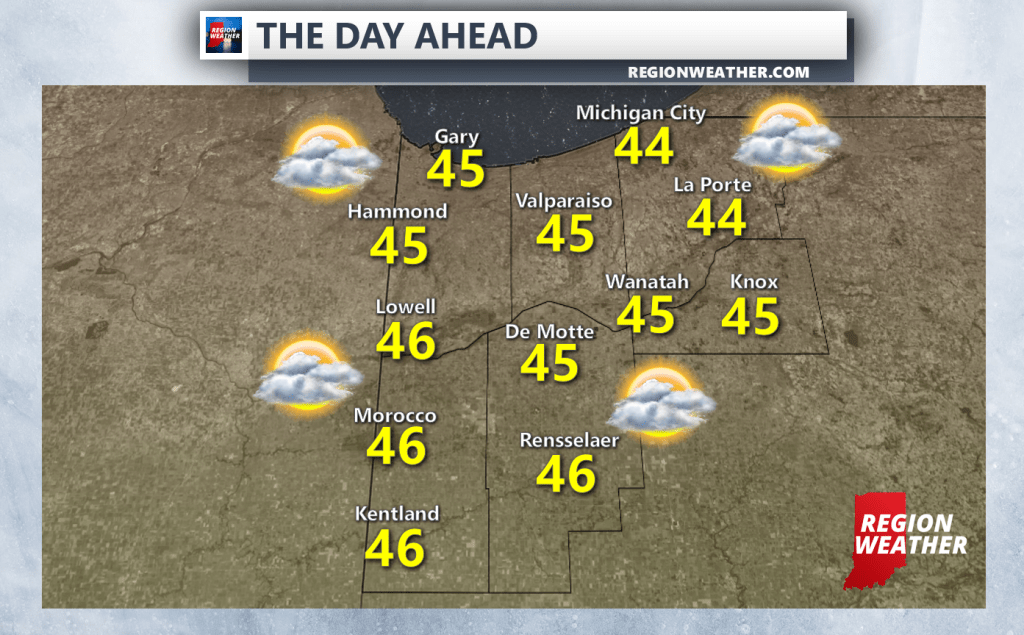 Intervals of clouds will stream in from the west with breezy conditions today. Highs will remain above-average as they reach into the middle 40s. Tonight we’ll keep temps up with a mild breeze with lows only expected to drop into the mid and upper 30s. We’ll introduce some light rain or drizzle chances on Christmas Eve as a system gets going to our northwest–this will lead to some rain on Christmas Day itself, mainly early as it looks right now! We’ll keep you updated!