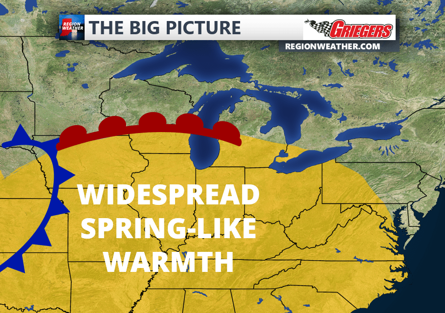 This will also trigger some severe weather in the central Plains and even a few storms locally–a sure sign that Spring is almost here.