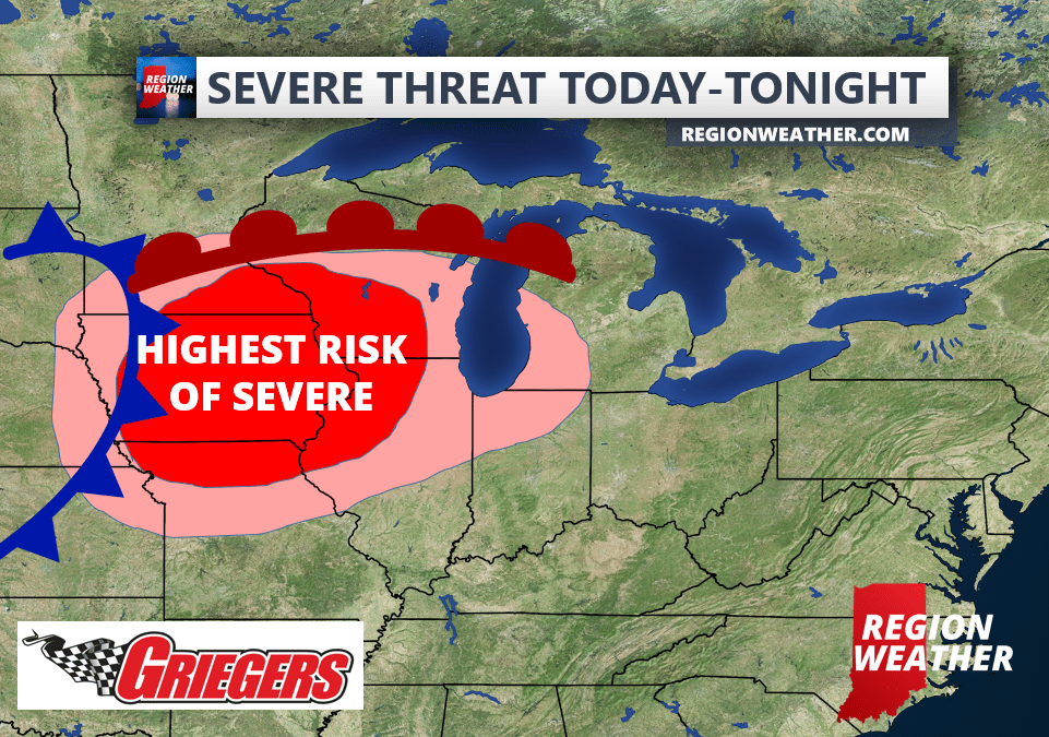 Our strong storm system will trigger severe storms later today out in Iowa and we’ll keep an eye on these as they quickly move east. We’ve been upgraded by the Storm Prediction Center to a Marginal Risk–primary threat would be for stronger winds within some of these showers and storms once they reach us overnight. We’ll keep tabs on it for you and will pass along updates as needed!