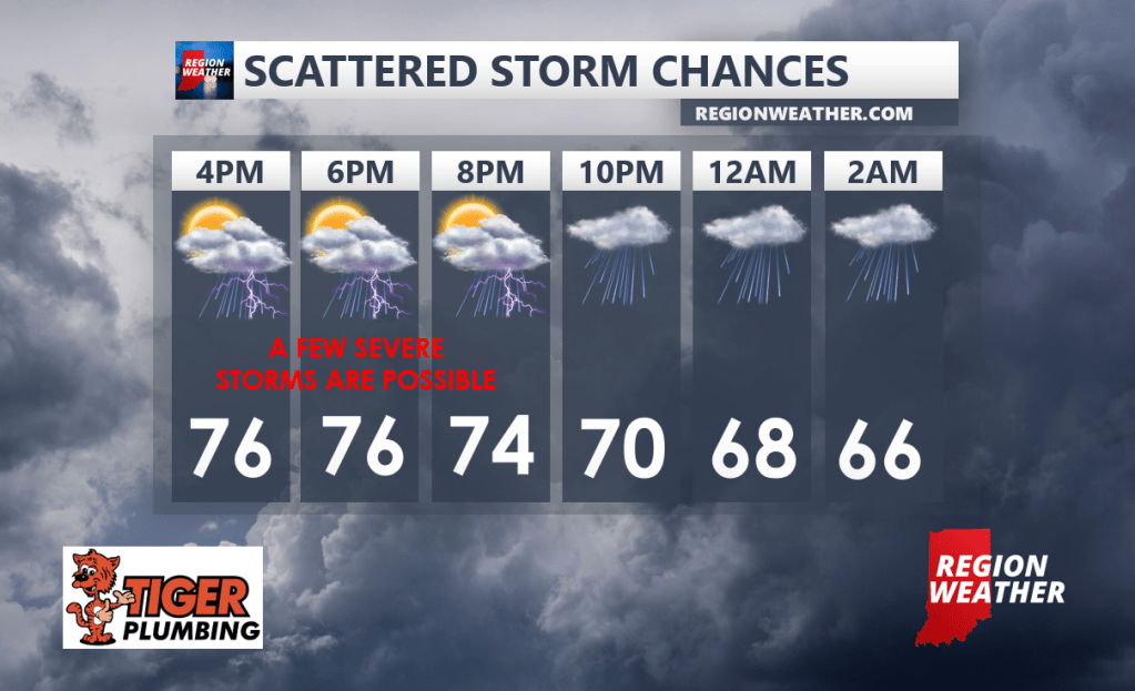 You can feel the humidity outside that has really ramped up as expected over the last 24 hours! This is in response to an area of low pressure pulling in lots of deep, tropical moisture from the Gulf of Mexico. Daytime heating has helped pop a few downpours as of early this afternoon, but our severe threat would be focused more on late afternoon into the evening hours. We’ll be watching the storms developing downstate as those will have some time to strengthen before reaching the Region. Primary threats would be strong winds and hail, but isolated tornadoes cannot be ruled out later today. We’ll keep you updated as we go throughout the afternoon and evening as always.