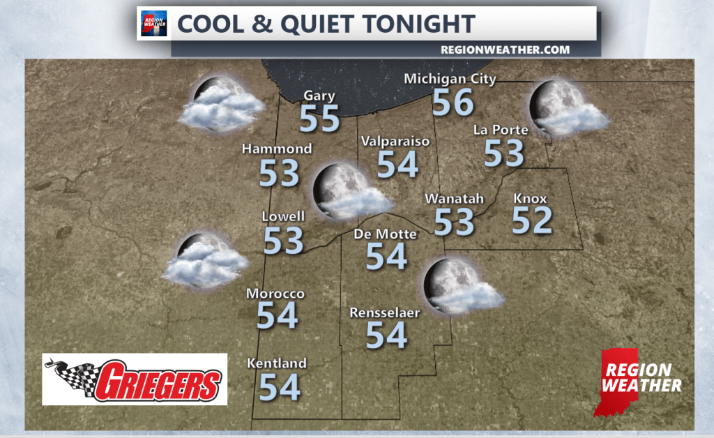 Partly cloudy skies can be expected tonight with a comfortably cool night ahead as lows drop into the low 50s. We’ll increase our clouds and rain chances on Friday as our next system approaches. We’ll chat about that and some HEAT next week on a special Thursday evening edition of Region Weather LIVE coming up tonight!