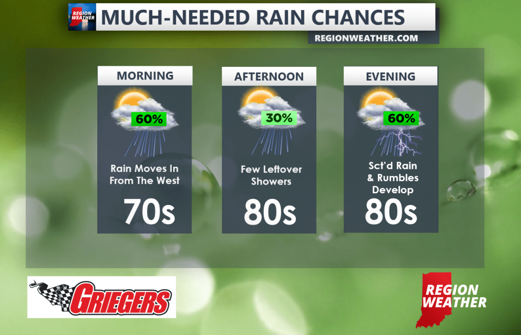 A large complex of showers and storms is moving in from the west this morning and will bring some rain to the Region late morning. This complex is expected to begin to fade as it moves east and away from its main source of energy–so anything we can get from this first round will be a bonus. We’ll get some breaks through the afternoon before another round of scattered (not for everyone) showers and storms develops later this afternoon into the evening. Our rain potential will continue tonight as a frontal boundary moves through the Region. Our chances are there, but the modeling isn’t impressed with much rain at all for NWI–so again, we’ll take as much as we can squeak out from these clouds today!