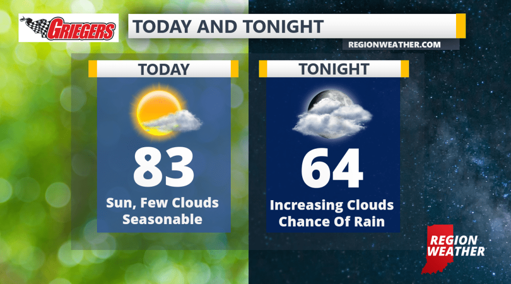 Happy Wednesday (already?!) Region Weather community! Sunshine will continue today with high clouds pushing in from the west late. Our next cold front arrives tomorrow bringing a chance of leftover rain tonight from storms to our west, but a better chance for a few rain and rumbles tomorrow. Highs today will top out in the low to mid 80s. Enjoy!