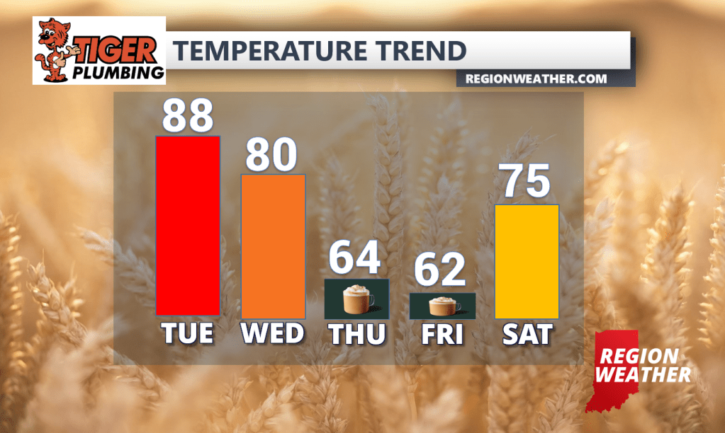 A little bit of something for everyone this week! Summer-like heat and humidity today with fall-like pumpkin spice everything Thursday and Friday. This all happens with a frontal passgae midday Wednesday that will turn our winds around to the north bringing in cooler, drier air by the hour! Not that we have a choice, but which season do you prefer?