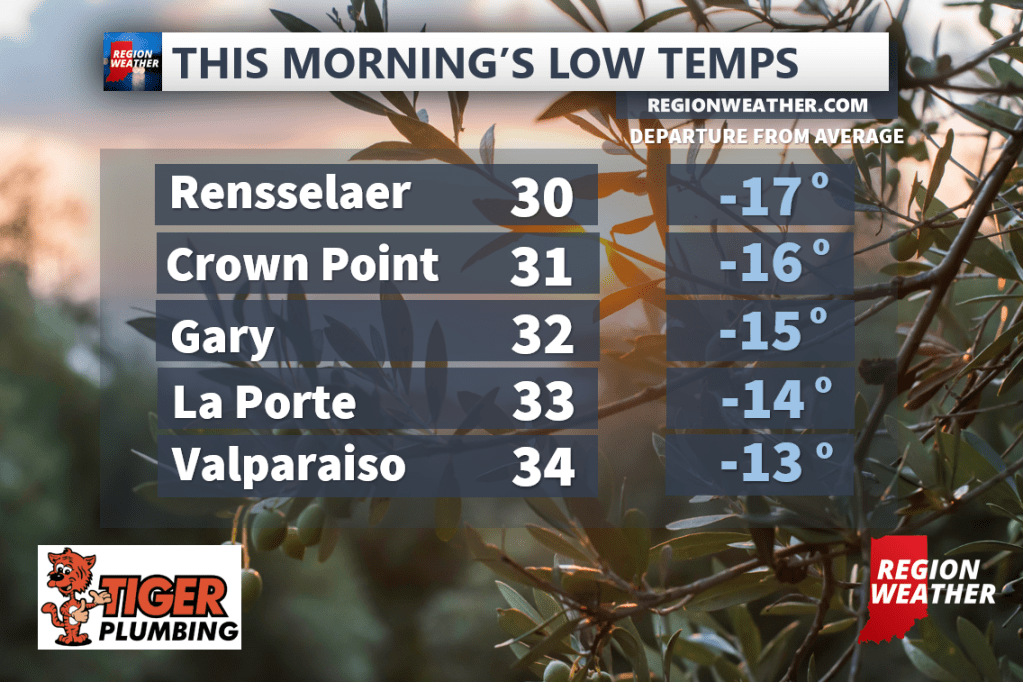A beautiful Fall weekend is in front of us with lots of sunshine expected an a gradual warming trend, but let’s be honest, we can only go up from here! Extra cup of coffee is required! Take a look at some of our Region low temps this morning: