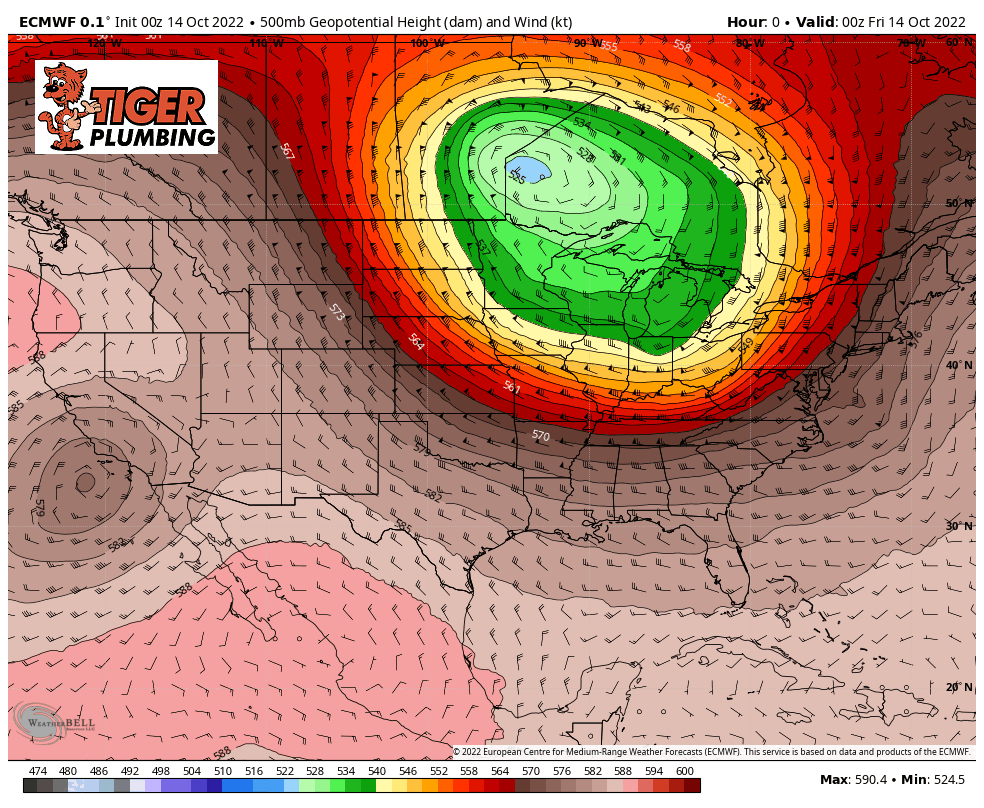 Happy Friday! That green blob you see rotating around the Great Lakes? That’s cold air. Notice how it lingers and even dives further south into the beginning of next week resulting in our high temps staying in the 50s this weekend and diving into the 40s early next week. There are signs that we flip the pattern later next week into the following weekend allowing for a late October warm-up. Fingers crossed!